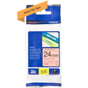 TZe-B51 black on fluorescent orange 24 mm x 5 m
