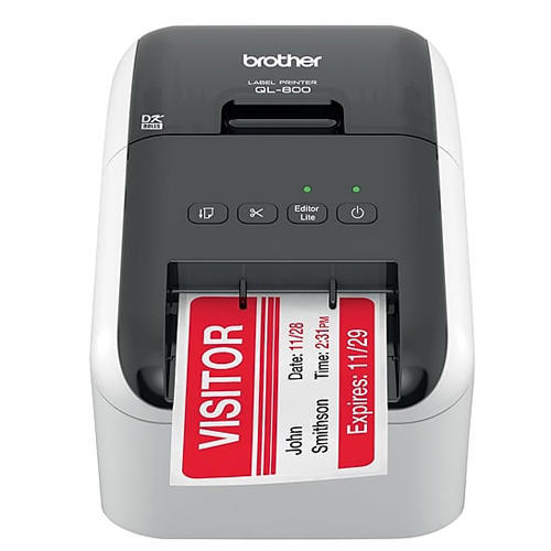 Professional, high-speed label printer helps you quickly tackle labeling tasks in your busy office. Create amazing Black/Red labels using DK-2251 or cost-effective paper labels for packages, envelopes, file folders, name badges, postage and more. The super-fast, printing up to 93 standard address labels per minute with black text at 300dpi‡; help save time on big projects. An auto cutter allows for printing 1 or multiple labels at a time, eliminating wasted label sheets. The “Plug & Label” feature supports quick label printing of most basic labels – no software installation required for Windows® PCs.‡ P-touch Editor software for Windows® and Mac® lets you create labels as you desire. Print from Microsoft Word/Excel/Outlook. Uses convenient, Brother genuine DK drop in labeling supplies. Needs no ink or toner.