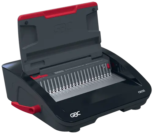 The GBC CB25E CombBind Electric Punch and Bind Machine is an all-in-one electric machine that helps you create professionally bound documents and handouts. It uses sleek CombBind spines, which allow pages to lay flat for easy reading. Great for shared use in busy offices.