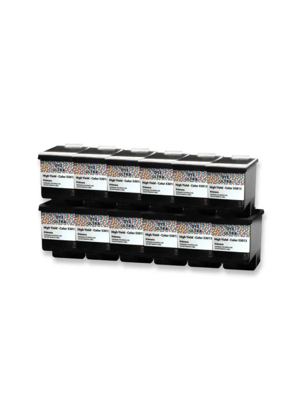 This full-color ink cartridge delivers vibrant, brilliant colors and a new, darker “Ultra Black,” perfect for applications requiring an accurate, process-color black. The new and improved ink formulation is also highly water-resistant when used with many materials, including Primera’s glossy white BOPP label stock. The cartridge is compatible with Primera’s LX600, LX610, and LX910 Color Label Printers. Includes 12 Ink Cartridges.