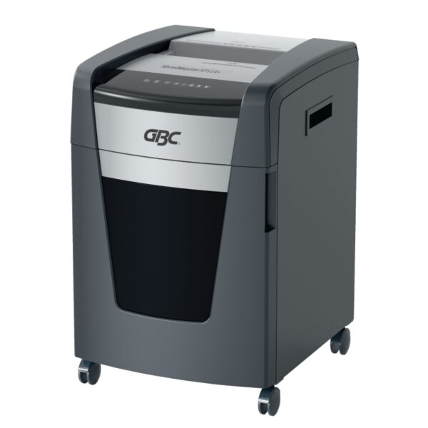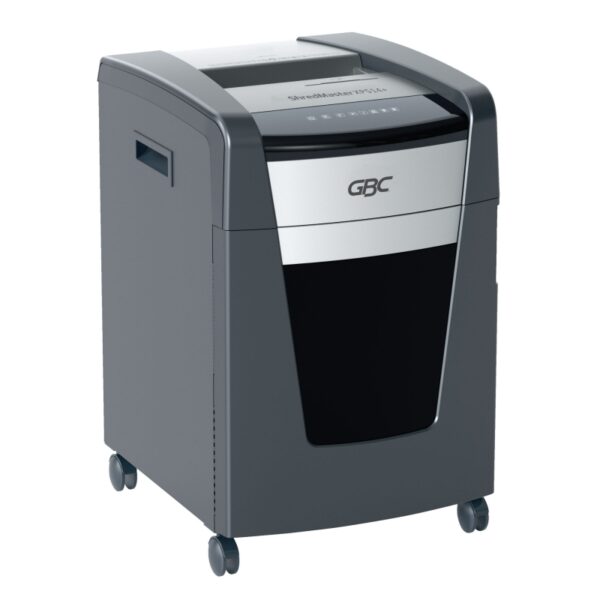 Momentum Extra jam free paper shredders are ideal for destroying confidential documents in the office. Active sensing technology measures the number of sheets being fed in real-time to stop paper jams and misfeeds; indicated by a red LED on the control panel. This paper shredder will not operate until the number of sheets is reduced below or at the maximum sheet capacity. This micro cut shredder is designed for moderate to heavy use with its high sheet capacity, large bin size and continuous run time. There’s no need to remove staples and paper clips first; this GBC shredder also safely shreds CD’s, DVD’s and credit cards through a separate feed slot.