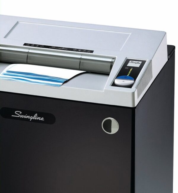 • SPS (Safety Protection System) package: Electronically controlled, transparent safety flap in the feed opening as additional safety element; automatic reverse and power cut-off (avoids paper jams) ; automatic stop if the shred bin is full ; electronic door protection via a magnetic proximity switch; double motor protection; energy saving mode (ESM) automatic standby and power off after 1 hour