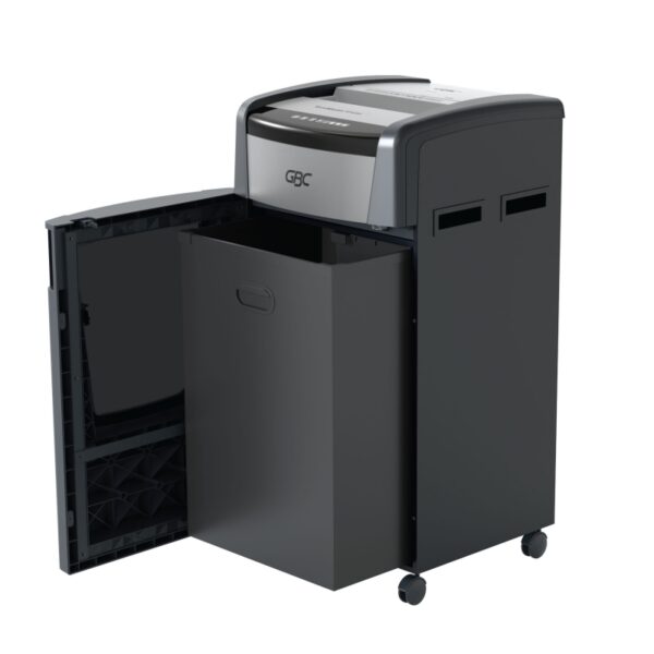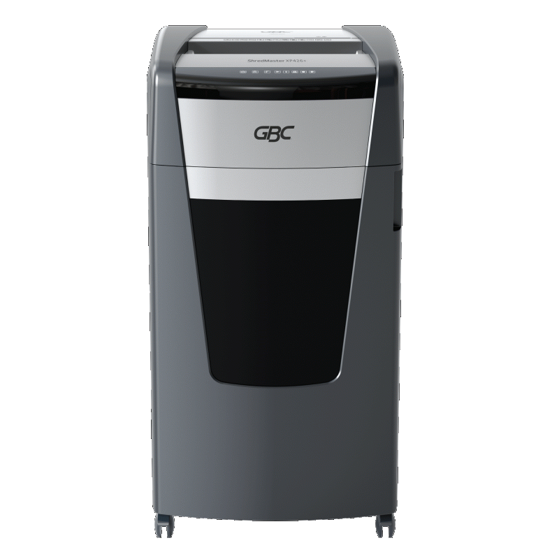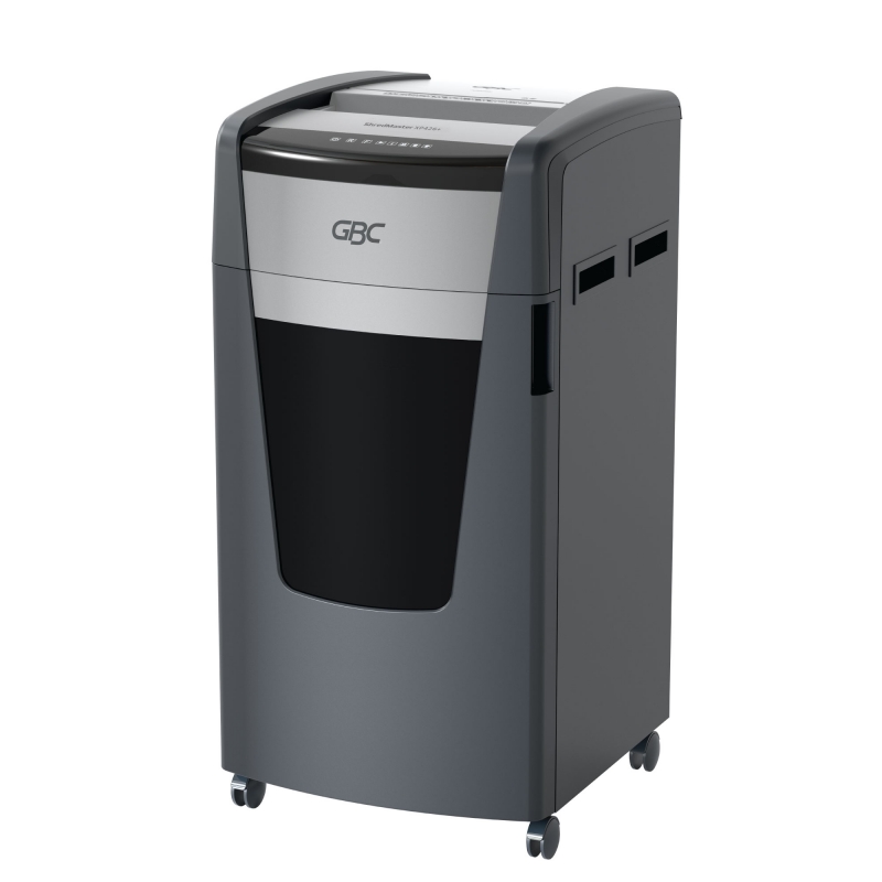 Momentum Extra jam free paper shredders are ideal for destroying confidential documents in the office. Active sensing technology measures the number of sheets being fed in real-time to stop paper jams and misfeeds; indicated by a red LED on the control panel. This paper shredder will not operate until the number of sheets is reduced below or at the maximum sheet capacity. This cross cut shredder is designed for moderate to heavy use with its high sheet capacity, large bin size and continuous run time. There’s no need to remove staples and paper clips first; this GBC shredder also safely shreds CD’s, DVD’s and credit cards through a separate feed slot.