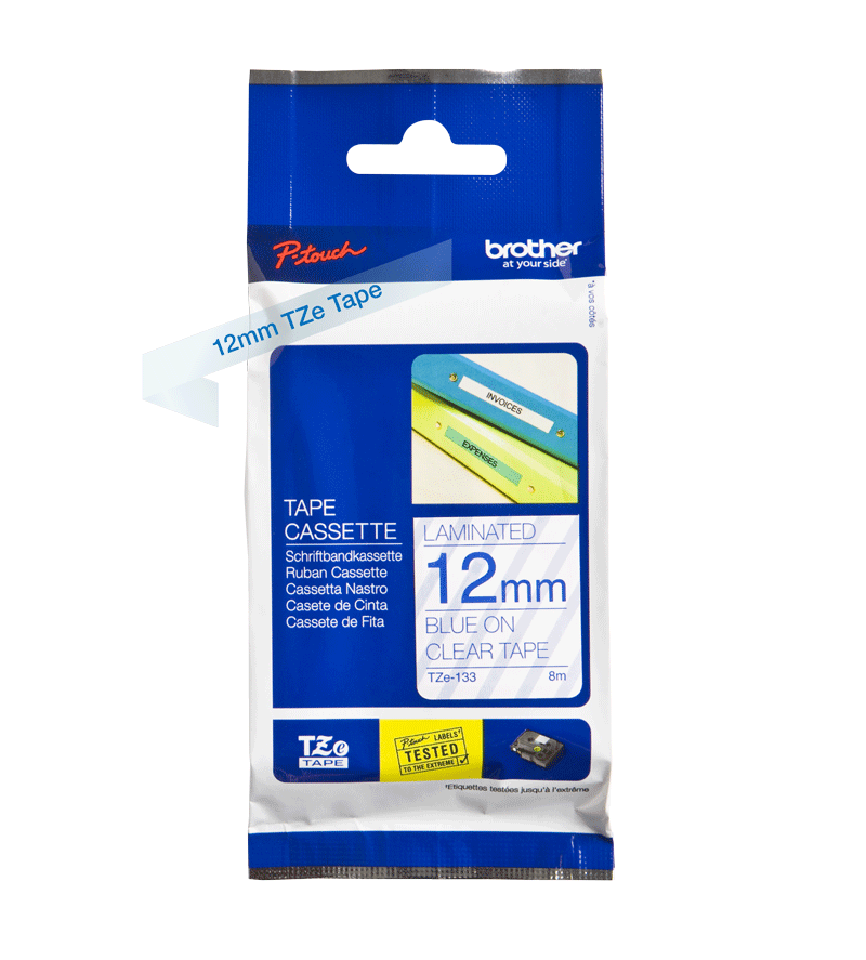Compatible with a wide range of Brother’s P-touch printers, this genuine laminated TZe-133 labelling tape cassette is especially versatile thanks to its easy-to-read blue on clear colour – so it comes in useful around the home, office and in other workplaces.