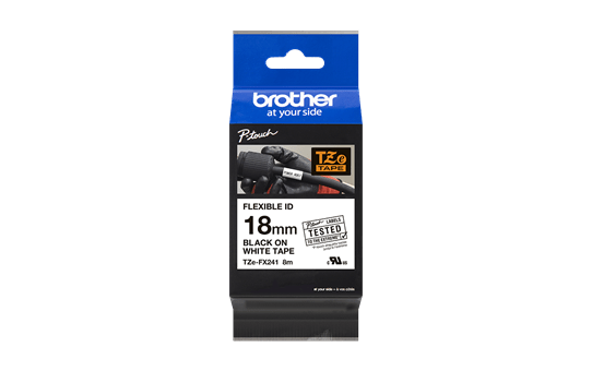 Ideal for producing identification labels for cables, wires, PVC tubing or anything else cylinder-shaped, the special adhesive on the Brother TZe-FX241 black on white labelling tape ensures that your important labels stay put for longer. Compatible with P-touch label printers that show the TZ or TZe logo on the tape cassette cover.