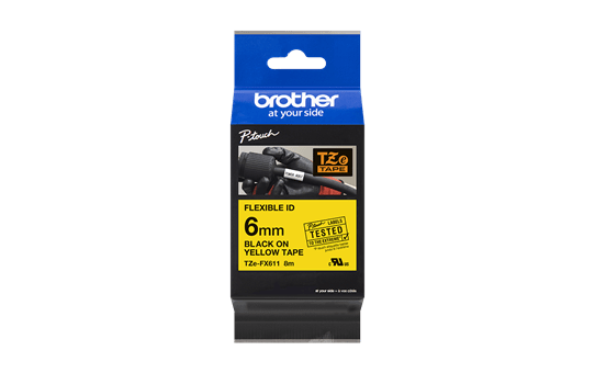 Ideal for producing identification labels for cables, wires, PVC tubing or anything else cylinder-shaped, the special adhesive on the Brother TZe-FX611 black on Yellow labelling tape ensures that your important labels stay put for longer. Compatible with P-touch label printers that show the TZ or TZe logo on the tape cassette cover.
