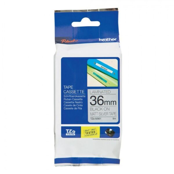 • DURABLE INDOOR OR OUTDOOR LABELS – Brother Genuine TZe-M961 (36 mm) standard laminated P-touch Tape is durable, resistant to fading and water damage, and won’t smudge or smear. It is suitable for indoor or outdoor use, even in harsh weather conditions. The TZe-M961 measures 36mm (1.4 -inch) x 8 meter and is Black on Matt Silver tape